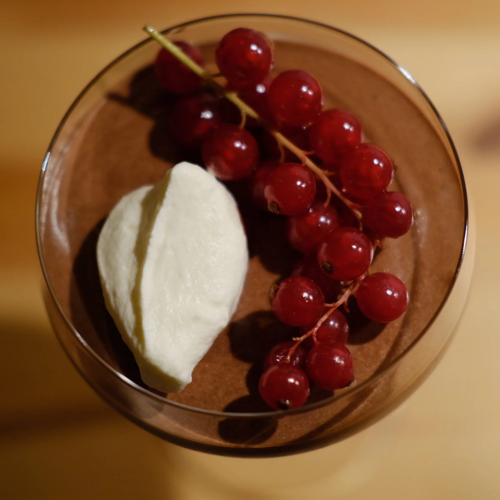 I går bjöds det på trerätters middag här hemma och till efterrätt hade jag gjort en fransk chokladmousse. Jag dekorerade min mousse med en klick nyvispad grädde och en vacker vinbärsklase.